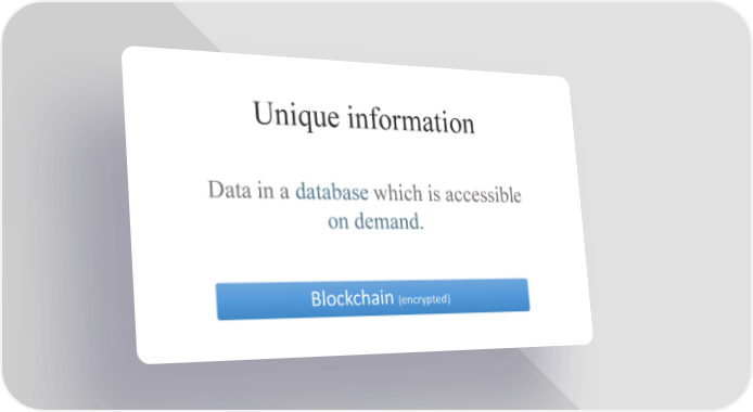 Unique information Data in a database which is accessible on demand. Blockchain (encrypted) Lisk Page 56 Page 58