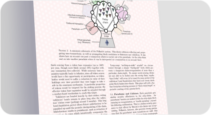 POLKADOT: VISION FOR A HETEROGENEOUS MULTI-CHAIN FRAMEWORK DRAFT 1 6 Transaction (submitted by external actor) Propagated transactions Collator Block candidate submission Propagated block Fisherman Validator swarm 2nd order (each coloured by its Relay-chain Parachain community designated parachain) Account Inbound transaction Interchain transactions (managed by validators) Relay chain Outbound transaction Parachain Parachain Parachain queues and I/O bridge Virtual parachain (e.g. Ethereum) Figure 2. A summary schematic of the Polkadot system. This shows collators collecting and propa- gating user-transactions, as well as propagating block candidates to fishermen and validators. It also shows how an account can post a transaction which is carried out of its parachain, via the relay-chain and on into another parachain where it can be interpreted as a transaction to an account there. 4 funds coming from a token base expansion (up to 100% Long-range “nothing-at-stake” attacks are circum- per year, though more likely around 10%) together with vented through a simple “checkpoint” latch which pre- any transaction fees collected. While monetary base ex- vents a dangerous chain-reorganisation of more than a pansion typically leads to inflation, since all token owners particular chain-depth. To ensure newly-syncing clients would have a fair opportunity at participation, no token- are not able to be fooled onto the wrong chain, regular holder would need to suffer a reduction in value of their “hard forks” will occur (of at most the same period of the holdings over time provided they were happy to take a validators’ bond liquidation) that hard-code recent check- role in the consensus mechanism. A particular proportion point block hashes into clients. This plays well with a fur- of tokens would be targeted for the staking process; the ther footprint-reducing measure of “finite chain length” or effective token base expansion would be adjusted through periodic reseting of the genesis-block. a market-based mechanism to reach this target. Validators are bonded heavily by their stakes; exiting 5.3. Parachains and Collators. Each parachain gets validators’ bonds remain in place long after the valida- similar security affordances to the relay-chain: the tors’ duties cease (perhaps around 3 months). This long parachains’ headers are sealed within the relay-chain block bond-liquidation period allows future misbehaviour to be ensuring no reorganisation, or “double-spending”, is possi- punished up until the periodic checkpointing of the chain. ble following confirmation. This is a similar security guar- Misbehaviour results in punishment, such as reduction of antee to that offered by Bitcoin’s side-chains and merge- reward or, in cases which intentionally compromise the mining. Polkadot, however, also provides strong guaran- network’s integrity, the validator losing some or all of its tees that the parachains’ state transitions are valid. This stake to other validators, informants or the stakeholders happens through the set of validators being cryptograph- as a whole (through burning). For example, a validator ically randomly segmented into subsets; one subset per whoattemptstoratify both branches of a fork (sometimes parachain, the subsets potentially differing per block. This known as a “short-range” attack) may be identified and setup generally implies that parachains’ block times will punished in the latter way. be at least as long as that of the relay-chain. The specific means of determining the partitioning is outside the scope 4 Such an attack is where the adversary forges an entirely new chain of history from the genesis block onwards. Through controlling a relatively insignificant portion of stake at the offset, they are able to incrementally increase their portion of the stake relative to all other stakeholders as they are the only active participants in their alternative history. Since no intrinsic physical limitation exists on the creation of blocks (unlike PoW where quite real computational energy must be spent), they are able to craft a chain longer than the real chain in a relatively short timespan and potentially make it the longest and best, taking over the canonical state of the network.
