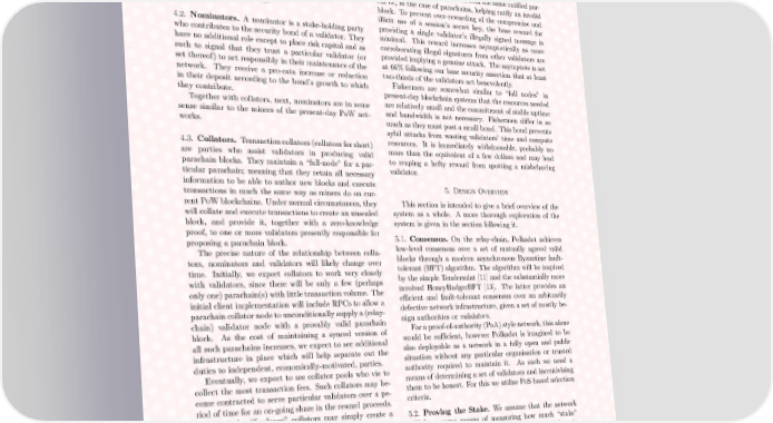 POLKADOT: VISION FOR A HETEROGENEOUS MULTI-CHAIN FRAMEWORK DRAFT 1 5 A validator not fulfilling their duty to find consensus the existence of fishermen, we expect events of misbe- under the rules of our chosen consensus algorithm is pun- haviour to happen seldom, and when they do only due to ished. For initial, unintentional failures, this is through the bonded party being careless with secret key security, withholding the validator’s reward. Repeated failures re- rather than through malicious intent. The name comes sult in the reduction of their security bond (through burn- from the expected frequency of reward, the minimal re- ing). Provably malicious actions such as double-signing or quirements to take part and the eventual reward size. conspiring to provide an invalid block result in the loss of Fishermen get their reward through a timely proof that the entire bond (which is partially burnt but mostly given at least one bonded party acted illegally. Illegal actions to the informant and the honest actors). include signing two blocks each with the same ratified par- Insomesense,validatorsaresimilartotheminingpools ent or, in the case of parachains, helping ratify an invalid of current PoW blockchains. block. To prevent over-rewarding of the compromise and illicit use of a session’s secret key, the base reward for 4.2. Nominators. A nominator is a stake-holding party providing a single validator’s illegally signed message is who contributes to the security bond of a validator. They minimal. This reward increases asymptotically as more have no additional role except to place risk capital and as corroborating illegal signatures from other validators are such to signal that they trust a particular validator (or provided implying a genuine attack. The asymptote is set set thereof) to act responsibly in their maintenance of the at 66% following our base security assertion that at least network. They receive a pro-rata increase or reduction two-thirds of the validators act benevolently. in their deposit according to the bond’s growth to which Fishermen are somewhat similar to “full nodes” in they contribute. present-day blockchain systems that the resources needed Together with collators, next, nominators are in some are relatively small and the commitment of stable uptime sense similar to the miners of the present-day PoW net- and bandwidth is not necessary. Fishermen differ in so works. muchastheymustpostasmallbond. Thisbondprevents sybil attacks from wasting validators’ time and compute 4.3. Collators. Transactioncollators (collators for short) resources. It is immediately withdrawable, probably no are parties who assist validators in producing valid more than the equivalent of a few dollars and may lead parachain blocks. They maintain a “full-node” for a par- to reaping a hefty reward from spotting a misbehaving ticular parachain; meaning that they retain all necessary validator. information to be able to author new blocks and execute 5. Design Overview transactions in much the same way as miners do on cur- rent PoW blockchains. Under normal circumstances, they This section is intended to give a brief overview of the will collate and execute transactions to create an unsealed system as a whole. A more thorough exploration of the block, and provide it, together with a zero-knowledge system is given in the section following it. proof, to one or more validators presently responsible for 5.1. Consensus. On the relay-chain, Polkadot achieves proposing a parachain block. low-level consensus over a set of mutually agreed valid The precise nature of the relationship between colla- blocks through a modern asynchronous Byzantine fault- tors, nominators and validators will likely change over tolerant (BFT) algorithm. The algorithm will be inspired time. Initially, we expect collators to work very closely by the simple Tendermint [11] and the substantially more with validators, since there will be only a few (perhaps involved HoneyBadgerBFT [13]. The latter provides an only one) parachain(s) with little transaction volume. The efficient and fault-tolerant consensus over an arbitrarily initial client implementation will include RPCs to allow a defective network infrastructure, given a set of mostly be- parachaincollator node to unconditionally supply a (relay- nign authorities or validators. chain) validator node with a provably valid parachain Foraproof-of-authority (PoA)style network, this alone block. As the cost of maintaining a synced version of would be sufficient, however Polkadot is imagined to be all such parachains increases, we expect to see additional also deployable as a network in a fully open and public infrastructure in place which will help separate out the situation without any particular organisation or trusted duties to independent, economically-motivated, parties. authority required to maintain it. As such we need a Eventually, we expect to see collator pools who vie to means of determining a set of validators and incentivising collect the most transaction fees. Such collators may be- them to be honest. For this we utilise PoS based selection come contracted to serve particular validators over a pe- criteria. riod of time for an on-going share in the reward proceeds. Alternatively, “freelance” collators may simply create a 5.2. Proving the Stake. We assume that the network market offering valid parachain blocks in return for a com- will have some means of measuring how much “stake” petitive share of the reward payable immediately. Simi- any particular account has. For ease of comparison to larly, decentralised nominator pools would allow multiple pre-existing systems, we will call the unit of measurement bonded participants to coordinate and share the duty of a “tokens”. Unfortunately the term is less than ideal for a validator. This ability to pool ensures open participation number of reasons, not least that being simply a scalar leading to a more de