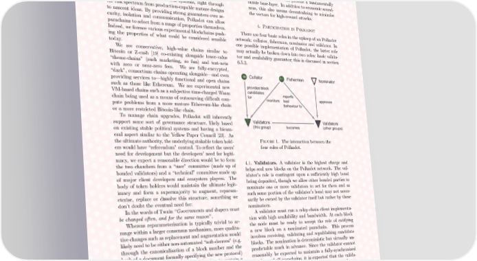 POLKADOT: VISION FOR A HETEROGENEOUS MULTI-CHAIN FRAMEWORK DRAFT 1 4 Polkadot provides a rather bare-bones piece of infrastruc- offloaded into middleware, placed through a ture leaving much of the complexity to be addressed at the parachain or introduced in a later optimisation. middleware level. This is a conscious decision intended to General: no unnecessary requirement, constraint reduce development risk, enabling the requisite software or limitation should be placed on parachains; to be developed within a short time span and with a good Polkadot should be a test bed for consensus sys- level of confidence over its security and robustness. temdevelopmentwhichcanbeoptimisedthrough making the model into which extensions fit as ab- stract as possible. 3.1. The Philosophy of Polkadot. Polkadot should Robust: Polkadot should provide a fundamentally provide an absolute rock-solid foundation on which to stable base-layer. In addition to economic sound- build the next wave of consensus systems, right through ness, this also means decentralising to minimise the risk spectrum from production-capable mature designs the vectors for high-reward attacks. to nascent ideas. By providing strong guarantees over se- curity, isolation and communication, Polkadot can allow 4. Participation in Polkadot parachains to select from a range of properties themselves. Indeed, we foresee various experimental blockchains push- There are four basic roles in the upkeep of an Polkadot ing the properties of what could be considered sensible network: collator, fisherman, nominator and validator. In today. one possible implementation of Polkadot, the latter role We see conservative, high-value chains similar to mayactually be broken down into two roles: basic valida- Bitcoin or Z-cash [19] co-existing alongside lower-value tor and availability guarantor; this is discussed in section “theme-chains” (such marketing, so fun) and test-nets 6.5.3. with zero or near-zero fees. We see fully-encrypted, “dark”, consortium chains operating alongside—and even Collator Fisherman Nominator providing services to—highly functional and open chains such as those like Ethereum. We see experimental new provides block VM-basedchains such as a subjective time-charged Wasm candidates reports chain being used as a means of outsourcing difficult com- for monitors bad approves pute problems from a more mature Ethereum-like chain behaviour to or a more restricted Bitcoin-like chain. To manage chain upgrades, Polkadot will inherently Validators Validators support some sort of governance structure, likely based (this group) becomes (other groups) on existing stable political systems and having a bicam- eral aspect similar to the Yellow Paper Council [23]. As theultimateauthority, theunderlyingstakabletokenhold- Figure 1. The interaction between the ers would have “referendum” control. To reflect the users’ four roles of Polkadot. need for development but the developers’ need for legiti- macy, we expect a reasonable direction would be to form 4.1. Validators. A validator is the highest charge and the two chambers from a “user” committee (made up of helps seal new blocks on the Polkadot network. The val- bonded validators) and a “technical” committee made up idator’s role is contingent upon a sufficiently high bond of major client developers and ecosystem players. The being deposited, though we allow other bonded parties to body of token holders would maintain the ultimate legit- nominate one or more validators to act for them and as imacy and form a supermajority to augment, reparam- such some portion of the validator’s bond may not neces- eterise, replace or dissolve this structure, something we sarily be owned by the validator itself but rather by these don’t doubt the eventual need for: nominators. In the words of Twain “Governments and diapers must Avalidator must run a relay-chain client implementa- be changed often, and for the same reason”. tion with high availability and bandwidth. At each block Whereas reparameterisation is typically trivial to ar- the node must be ready to accept the role of ratifying range within a larger consensus mechanism, more qualita- a new block on a nominated parachain. This process tive changes such as replacement and augmentation would involves receiving, validating and republishing candidate likely need to be either non-automated “soft-decrees” (e.g. blocks. The nomination is deterministic but virtually un- through the canonicalisation of a block number and the predictable much in advance. Since the validator cannot hash of a document formally specifying the new protocol) reasonably be expected to maintain a fully-synchronised or necessitate the core consensus mechanism to contain a database of all parachains, it is expected that the valida- sufficiently rich language to describe any aspect of itself tor will nominate the task of devising a suggested new which may need to change. The latter is an eventual aim, parachain block to a third-party, known as a collator. however, the former more likely to be chosen in order to Once all new parachain blocks have been properly rat- facilitate a reasonable development timeline. ified by their appointed validator subgroups, validators Polkadot’s primary tenets and the rules within which must then ratify the relay-chain block itself. This involves we evaluate all design decisions are: updating the state of the transaction queues (essentially Minimal: Polkadot should have as little functional- moving data from a parachain’s output queue to another ity as possible. parachain’s input queue), processing the transactions of Simple: noadditional complexity should be present the ratified relay-chain transaction set and ratifying the in the base protocol than can reasonably be final block, including the final parachain changes.