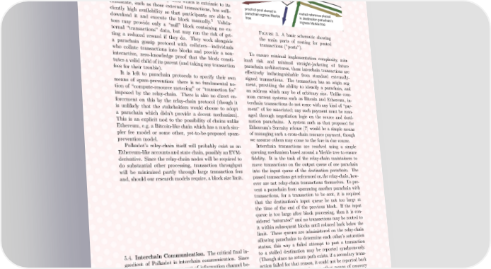 POLKADOT: VISION FOR A HETEROGENEOUS MULTI-CHAIN FRAMEWORK DRAFT 1 7 of this document but would likely be based either around Account sends post: Account receives post: a commit-reveal framework similar to the RanDAO [18] or entry placed in entry removed from use data combined from previous blocks of each parachain egress Merkle tree ingress Merkle tree under a cryptographically secure hash. for destination parachain Such subsets of validators are required to provide a parachain block candidate which is guaranteed valid (on Source: shares egress Destination: gets pain of bond confiscation). Validity revolves around two data with next block’s data from prior important points; firstly that it is intrinsically valid—that validators ingress block’s validators. all state transitions were executed faithfully and that all external data referenced (i.e. transactions) is valid for in- clusion. Secondly, that any data which is extrinsic to its proof-of-post stored in routed reference placed candidate, such as those external transactions, has suffi- parachain egress Merkle in destination parachain’s ciently high availability so that participants are able to tree ingress Merkle tree 5 download it and execute the block manually. Valida- tors may provide only a “null” block containing no ex- Figure 3. A basic schematic showing ternal “transactions” data, but may run the risk of get- the main parts of routing for posted ting a reduced reward if they do. They work alongside transactions (”posts”). a parachain gossip protocol with collators—individuals who collate transactions into blocks and provide a non- To ensure minimal implementation complexity, min- interactive, zero-knowledge proof that the block consti- imal risk and minimal straight-jacketing of future tutes a valid child of its parent (and taking any transaction parachain architectures, these interchain transactions are fees for their trouble). effectively indistinguishable from standard externally- It is left to parachain protocols to specify their own signed transactions. The transaction has an origin seg- means of spam-prevention: there is no fundamental no- ment, providing the ability to identify a parachain, and tion of “compute-resource metering” or “transaction fee” an address which may be of arbitrary size. Unlike com- imposed by the relay-chain. There is also no direct en- mon current systems such as Bitcoin and Ethereum, in- forcement on this by the relay-chain protocol (though it terchain transactions do not come with any kind of “pay- is unlikely that the stakeholders would choose to adopt ment” of fee associated; any such payment must be man- a parachain which didn’t provide a decent mechanism). aged through negotiation logic on the source and desti- This is an explicit nod to the possibility of chains unlike nation parachains. A system such as that proposed for Ethereum, e.g. a Bitcoin-like chain which has a much sim- Ethereum’s Serenity release [?] would be a simple means pler fee model or some other, yet-to-be-proposed spam- of managing such a cross-chain resource payment, though prevention model. we assume others may come to the fore in due course. Polkadot’s relay-chain itself will probably exist as an Interchain transactions are resolved using a simple Ethereum-likeaccountsandstatechain, possiblyanEVM- queuing mechanism based around a Merkle tree to ensure derivative. Since the relay-chain nodes will be required to fidelity. It is the task of the relay-chain maintainers to do substantial other processing, transaction throughput move transactions on the output queue of one parachain will be minimised partly through large transaction fees into the input queue of the destination parachain. The and, should our research models require, a block size limit. passedtransactionsgetreferencedontherelay-chain, how- ever are not relay-chain transactions themselves. To pre- vent a parachain from spamming another parachain with transactions, for a transaction to be sent, it is required that the destination’s input queue be not too large at the time of the end of the previous block. If the input queue is too large after block processing, then it is con- sidered “saturated” and no transactions may be routed to it within subsequent blocks until reduced back below the limit. These queues are administered on the relay-chain allowing parachains to determine each other’s saturation 5.4. Interchain Communication. The critical final in- status; this way a failed attempt to post a transaction gredient of Polkadot is interchain communication. Since to a stalled destination may be reported synchronously. parachains can have some sort of information channel be- (Though since no return path exists, if a secondary trans- tween them, we allow ourselves to consider Polkadot a action failed for that reason, it could not be reported back scalable multi-chain. In the case of Polkadot, the commu- to the original caller and some other means of recovery nication is as simple as can be: transactions executing in a would have to take place.) parachain are (according to the logic of that chain) able to 5.5. Polkadot and Ethereum. Due to Ethereum’s Tur- effect the dispatch of a transaction into a second parachain ing completeness, we expect there is ample opportu- or, potentially, the relay-chain. Like external transactions nity for Polkadot and Ethereum to be interoperable with on production blockchains, they are fully asynchronous each other, at least within some easily deducible secu- and there is no intrinsic ability for them to return any rity bounds. In short, we envision that transactions from kind of information back to its origin. Polkadot can be signed by validators and then fed into 5 Such a task might be shared between validators or could become the designate task of a set of heavily bonded validators known as availability guarantors.