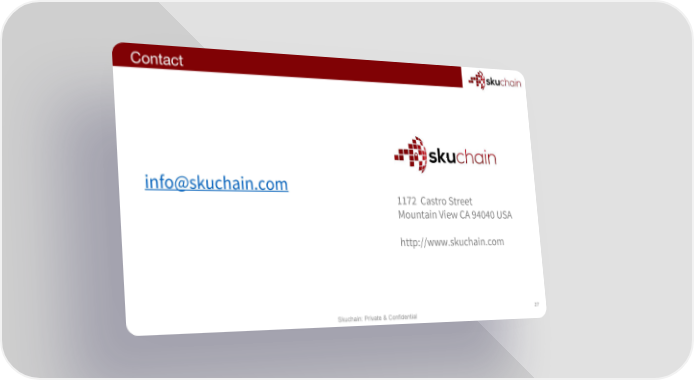 Contact [email protected] 1172 Castro Street Mountain View CA 94040 USA http://www.skuchain.com 27 Skuchain: Private & Confidential