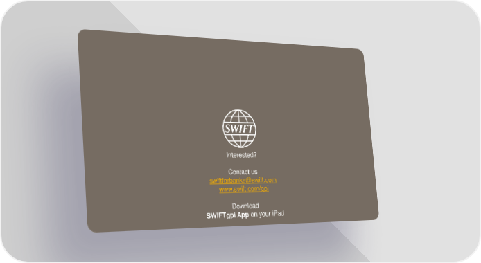 Interested? www.swift.com Contact us swiftforbanks@swift.com www.swift.com/gpi Download SWIFT gpi overview - October 2016 SWIFTgpi App on your iPad