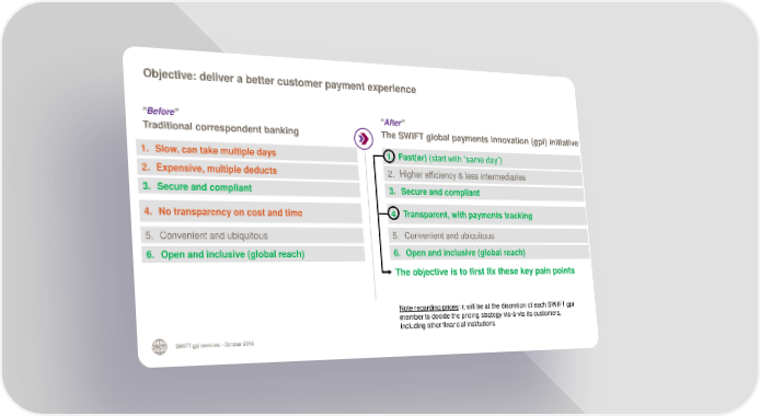 The SWIFT global payments innovation initiative Page 3 Page 5